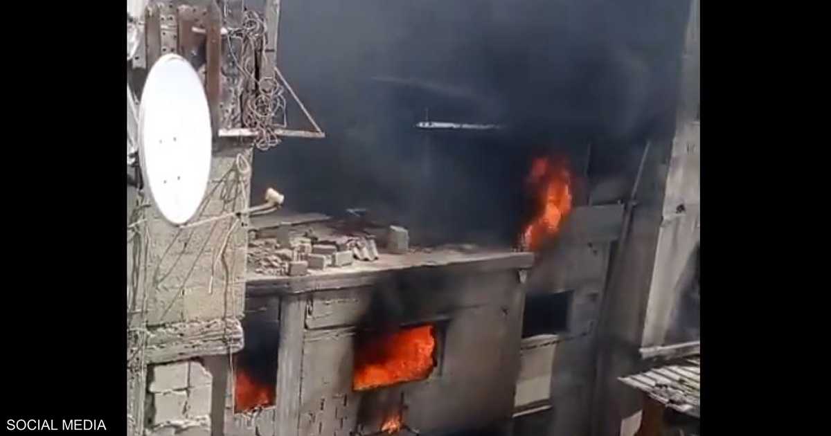 وأظهرت مقاطع فيديو منتشرة على منصة “إكس” اندلاع النيران في المنزل بعد تعرضه للتفجير.
