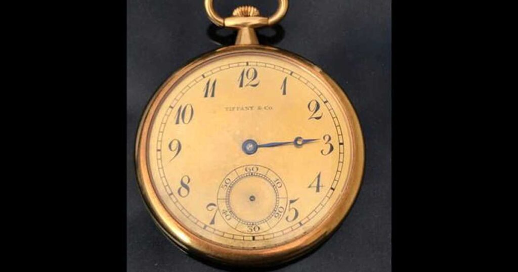 وكانت ثلاث ناجيات من ركاب السفينة المنكوبة قد أهدين الساعة المصنوعة من الذهب عيار 18 من تصميم “تيفاني آند كو” إلى القبطان أرثر روسترون ربان السفينة ” آر إم إس كارباثيا” بعد أن حول دفة سفينته لإنقاذهن وأخرين، عندما اصطدمت تايتانيك بجبل جليدي وغرقت في شمال المحيط الأطلسي خلال رحلتها الأولى عام 1912.
