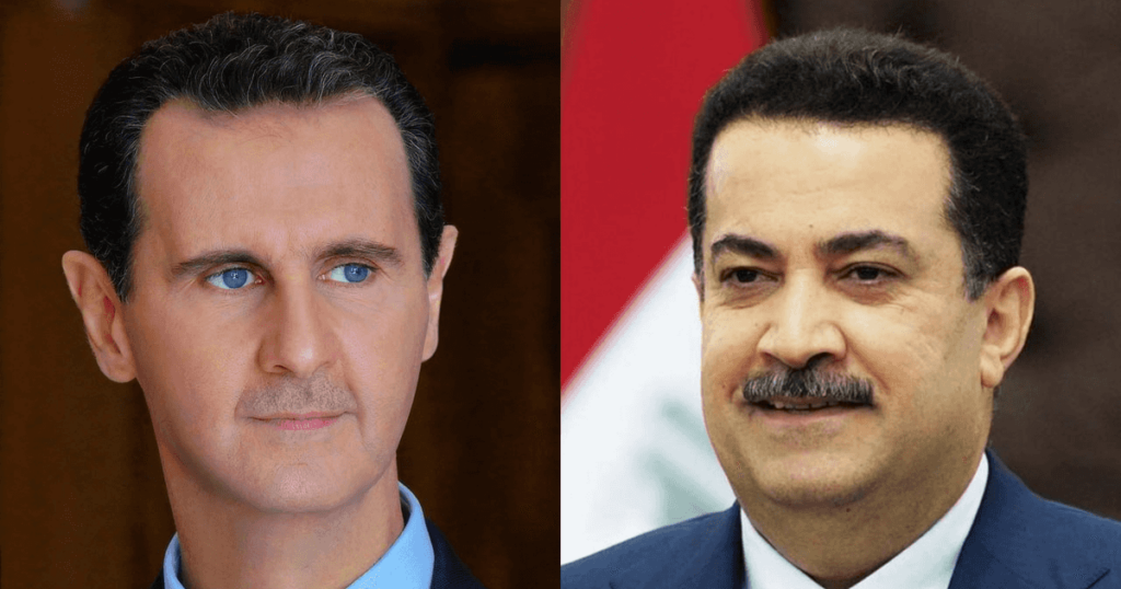 وجاء في بيان الرئاسة السورية: “الرئيس بشار الأسد يبحث في اتصال هاتفي مع رئيس الوزراء العراقي محمد شياع السوداني التطورات الأخيرة والتعاون المشترك بين البلدين في مجال مكافحة الإرهاب، وعددا من القضايا العربية والدولية”.