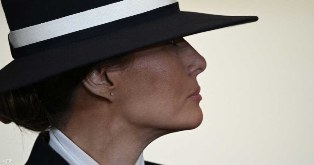 وأضافت القبعة الواسعة لمسة مختلفة للغاية على مظهر زوجة الرئيس على الرغم من أنها حجبت عينيها بالكامل.