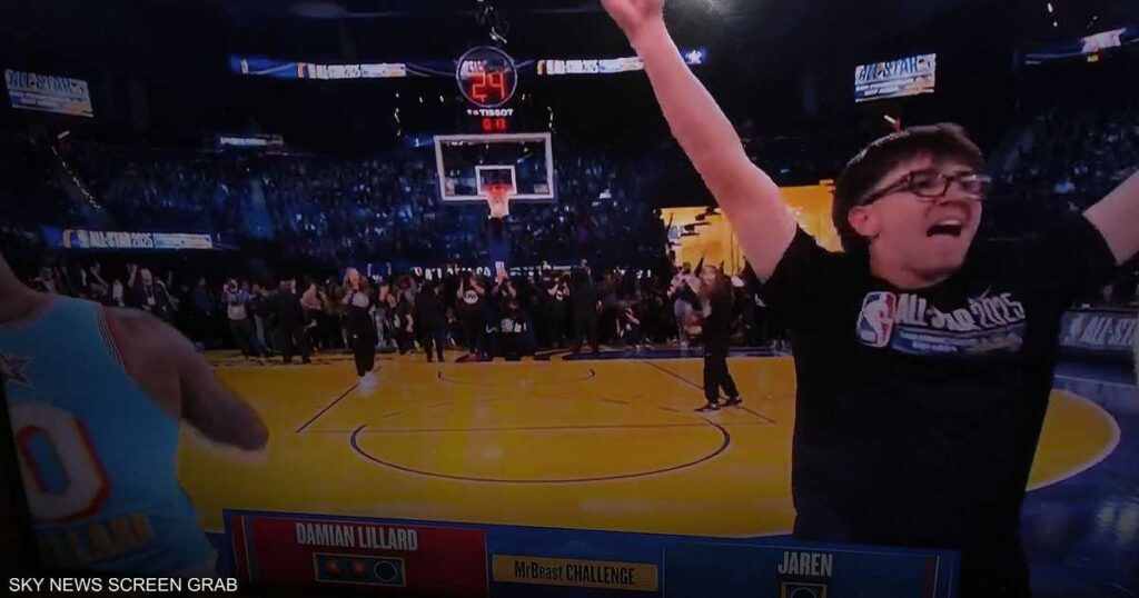 وخلال مباراة “كل النجوم” التي تجمع أبرز لاعبي دوري كرة السلة الوطني الأميركي، وبين شوطي اللقاء، بدأت مسابقة “تحدي الرميات”.