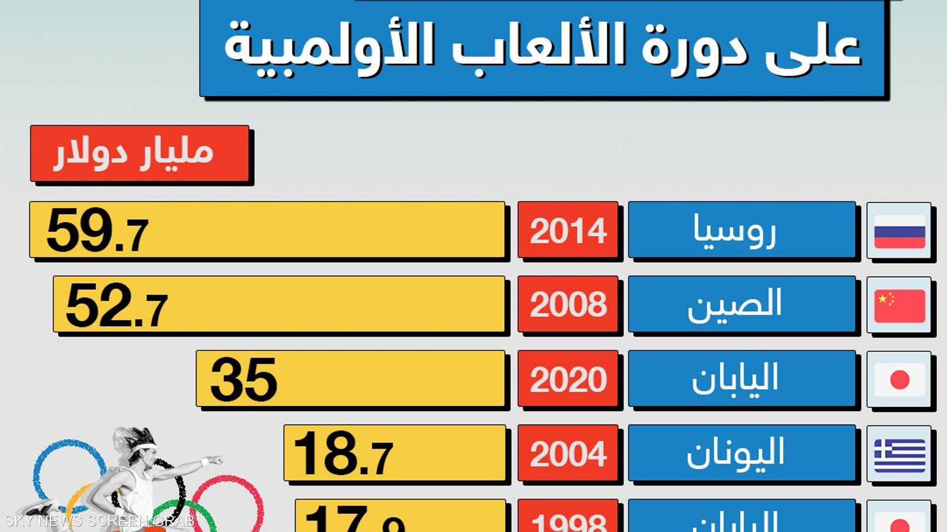 شاركها فيسبوك تويتر لينكدإن بينتيريست البريد الإلكتروني روسيا والصين تتصدران قائمة الدول الأكثر إنفاقا على دورة الألعاب الأولمبية إنفاقا الأكثر الألعاب الأولمبية الدول دورة على