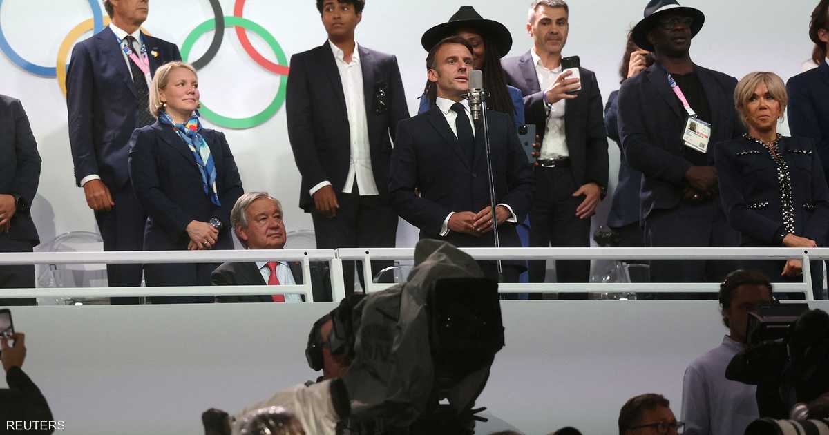 وقال ماكرون الجملة البروتوكولية تحت الأمطار أمام برج إيفل “أعلن افتتاح دورة الألعاب الثالثة والثلاثين للألعاب الحديثة”.
