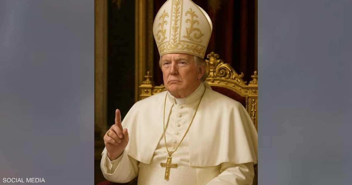 وظهر ترامب في الصورة بالرداء البابوي الأبيض بينما يشير بسبابته اليمنى نحو السماء.