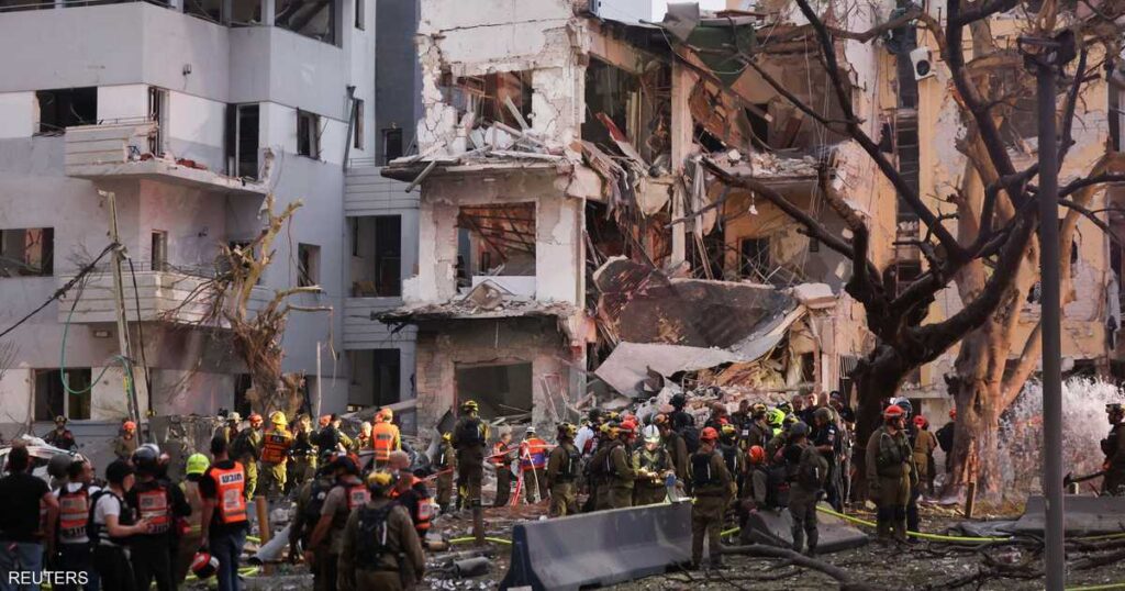 إسرائيل إيران إيراني على فيديو كبير لهجوم مبان منهارة ومصابون