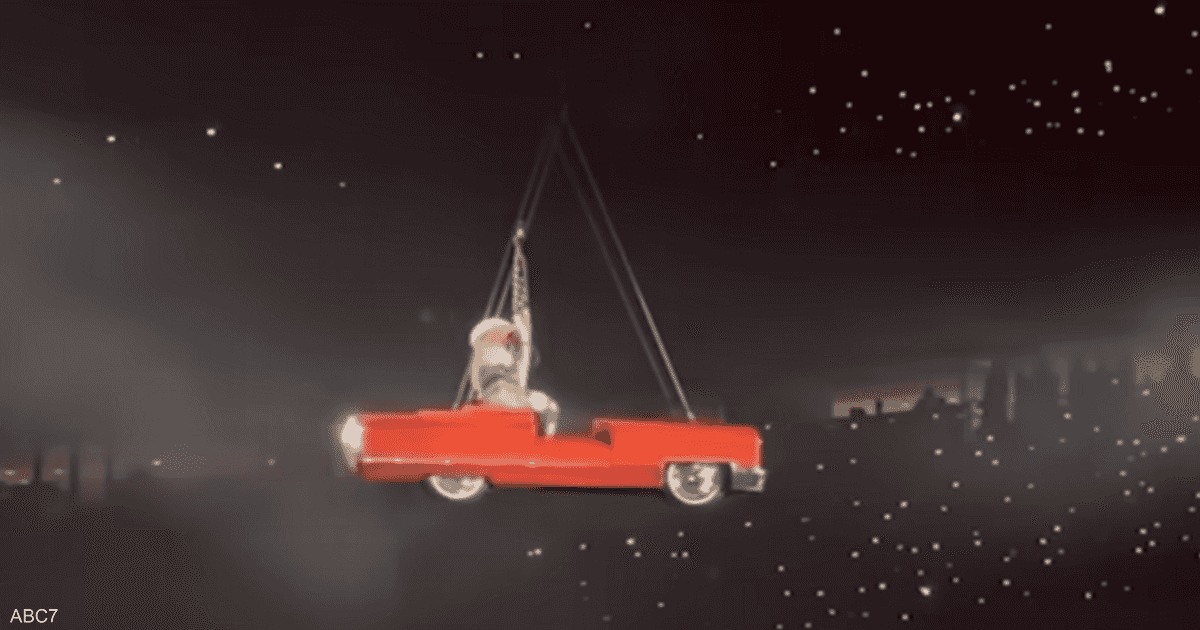 وفجأة، بدا أن الحبل الذي يثبت السيارة قد علق، فبدأت السيارة تنحرف وتتمايل بشكل خطير في الجو.