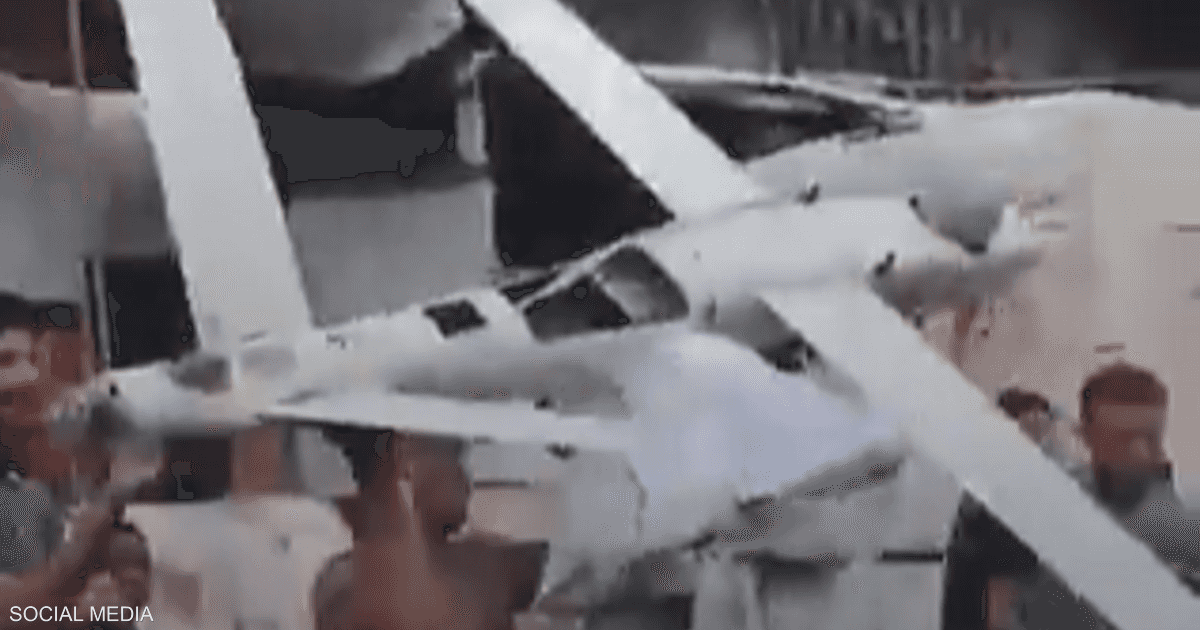 وتداول نشطاء على مواقع التواصل الاجتماعي مقطع فيديو يظهر عددا من سكان غزة وهم يتفقدون الطائرة بعد سقوطها.