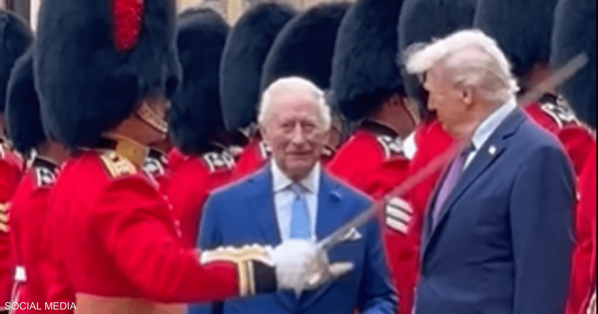 وخلال الجولة، توقف الزعيمان عند نهاية الصف لمشاهدة أحد الجنود يحمل سيفا احتفاليا. وعندما اقترب السيف من ترامب أثناء تحية الحرس، نظر الملك إليه ممازحا وقال: “انتبه للسيف”.