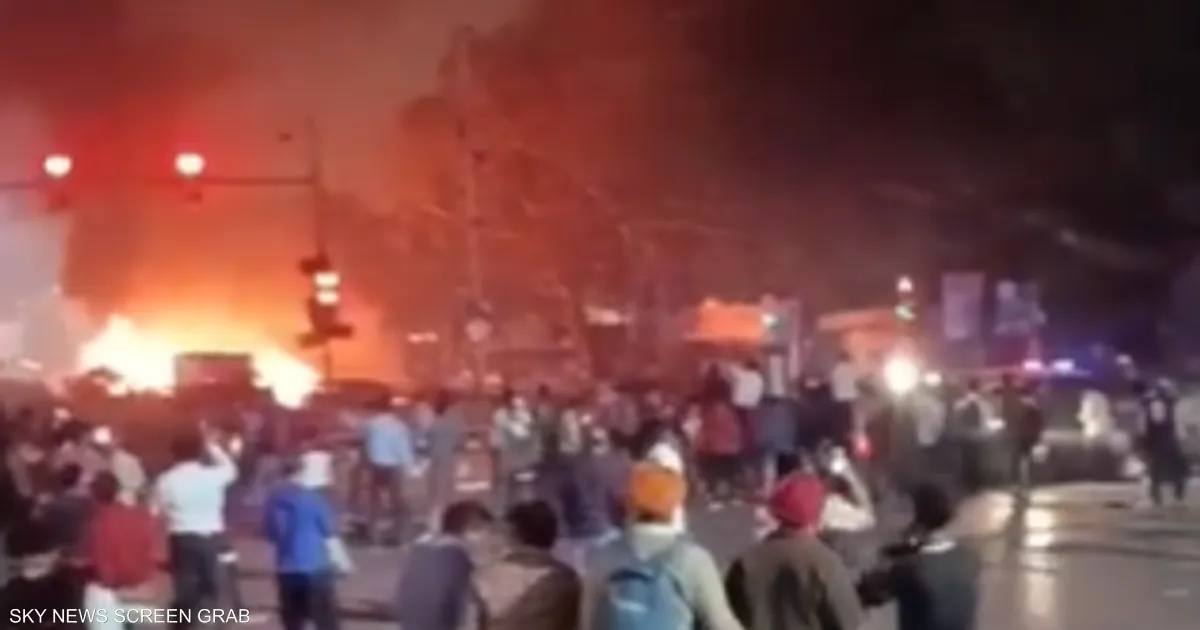 وفي مقاطع فيديو متداولة يمكن رؤية نيران ضخمة وسط تجمع العشرات.