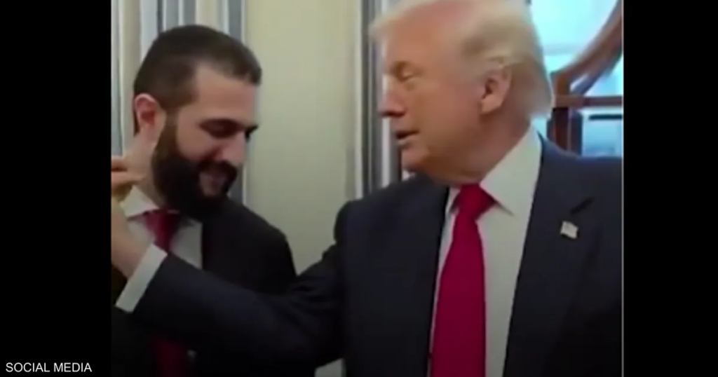 وأظهر مقطع فيديو من لقاء في البيت الأبيض الرئيس الأميركي وهو يرش عطرا من مجموعته الخاصة على الرئيس السوري أحمد الشرع، قبل أن يقدمه له كهدية.