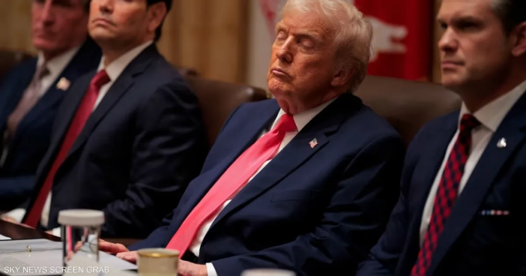 وأظهر مقطع فيديو، بينما كان وزير الخارجية ماركو روبيو يلقي كلمته في آخر الاجتماع، أن ترامب الجالس بجانبه كان متكئا على كرسيه وعيناه مغمضتان، ثم تحرك فجأة واعتدل ونظر إلى وزير الخارجية، وبعد لحظات بدت عينا ترامب مغمضتين مرة أخرى.
