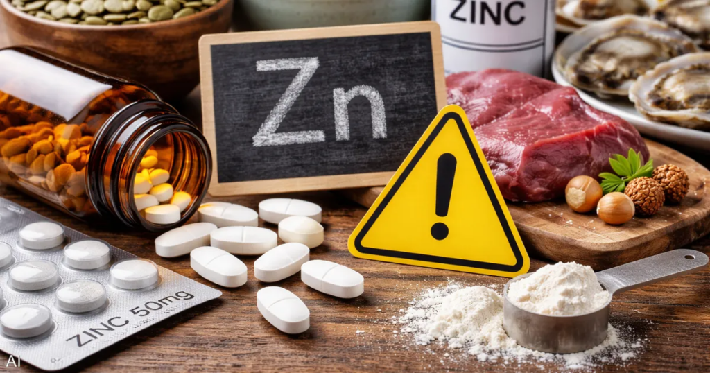 قد يؤدي تناول 50 ملغ من الزنك يوميا عن طريق الفم أو موضعيًا لعدة أسابيع إلى خفضمستويات الكوليسترول الجيد في الجسم، ما يضر بصحة القلب.